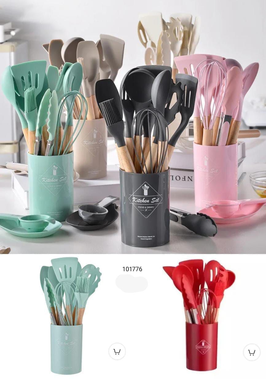 11 Pcs Silicone Cooking Utensils Set with Wooden Handles, Heat Resistant to 446?F, BPA Free