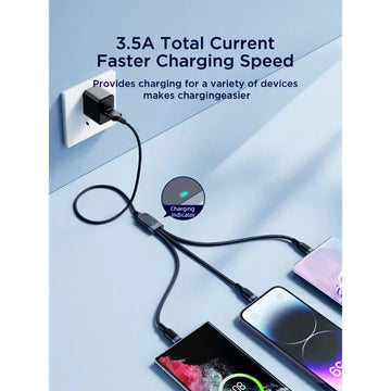 JoyRoom S-A18 3-in-1 Fast Charging and Data Cable – USB-A to Lightning, Type-C, and Micro, 3.5A